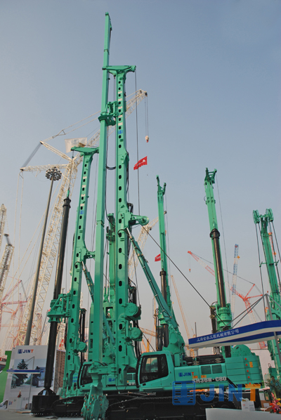 本届展会我公司共展出SD20A、SD28、SH36、SG46、SG60、C80、ZKD85B、M-85等8台,共六个系列的产品。作为一个专业的桩工机械生产商,我公司品种多、型号齐全,在桩工机械行业以精、专、强闻名,2009年获得上海小巨人企业称号。其中C80为国内首台液压铣削搅拌机,以SMW工法施工,工程造价低、成墙速度快、成墙质量好,而且拥有三轴钻机无法比拟的优势,它能对付一般中风化岩层,最大搅拌深度达35米,会展期间这“初来乍到”的家伙,以精湛的技艺、高挑的身材,俊朗的外貌引来了一批又一批的客户围观,为我公司增添了不少彩头。