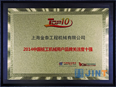 上海金泰跻身《2014中国桩工机械用户品牌关注度排行榜》四强