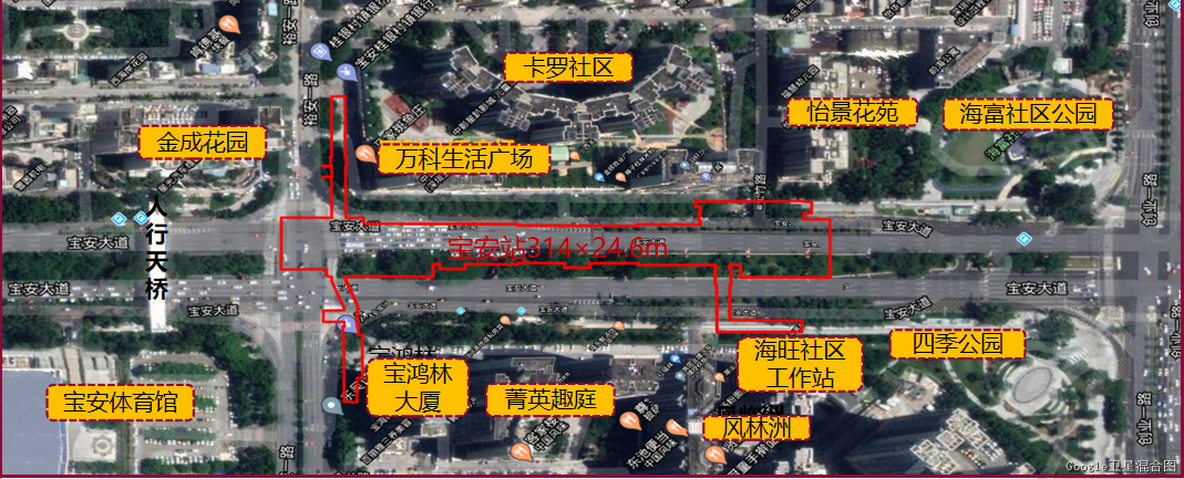 SX50在建施工的宝安站位于宝安大道上,处于裕安一路与创业一路之间,为穗莞深城际深圳宝安至前海段的第二座车站。该车站规模314m(长)×25.1m(宽),基坑开挖深度为30.5~32.87m,地下三层双柱三跨岛式车站,明挖顺作法施工,附属设4个出入口,2组风亭。周边建筑密布,沿线主干道两侧分布有地下通讯管线、电缆、燃气气管道、给排水管等各种类型的地下管道及线路,埋藏情况较为复杂。