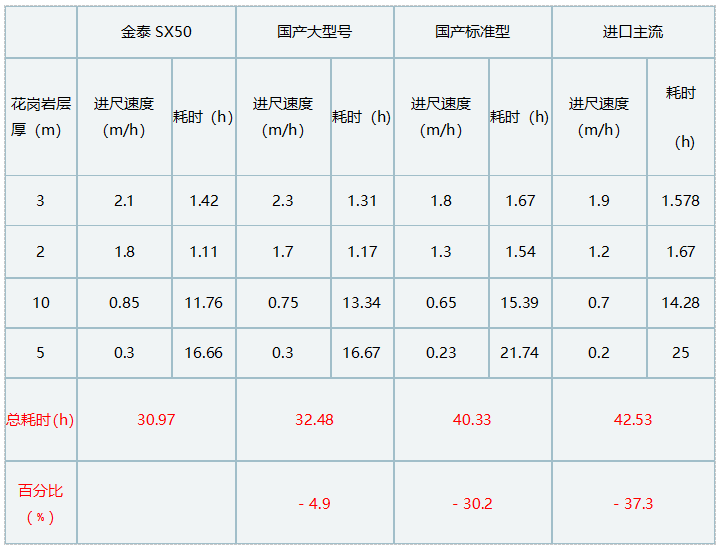 金泰SX50双轮铣施工效率比进口主流双轮铣、国产标准型双轮铣快30﹪以上;比国产大型号双轮铣施工效率快5﹪左右。